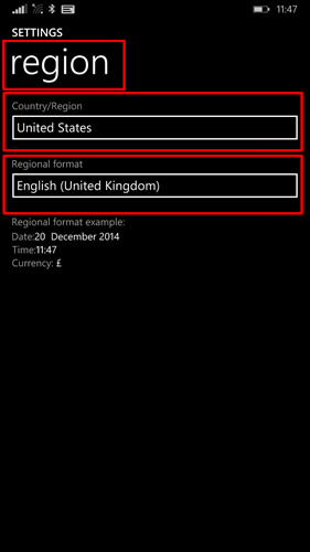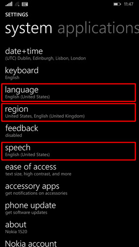 The three areas to change are “Region”, “Language” and “Speech”. Then you need to turn it on.